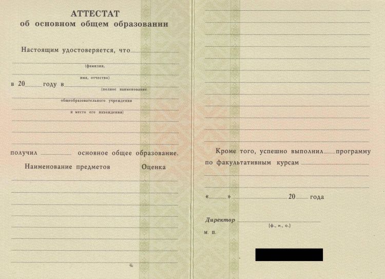 Аттестат за 9 класс 1994-2006